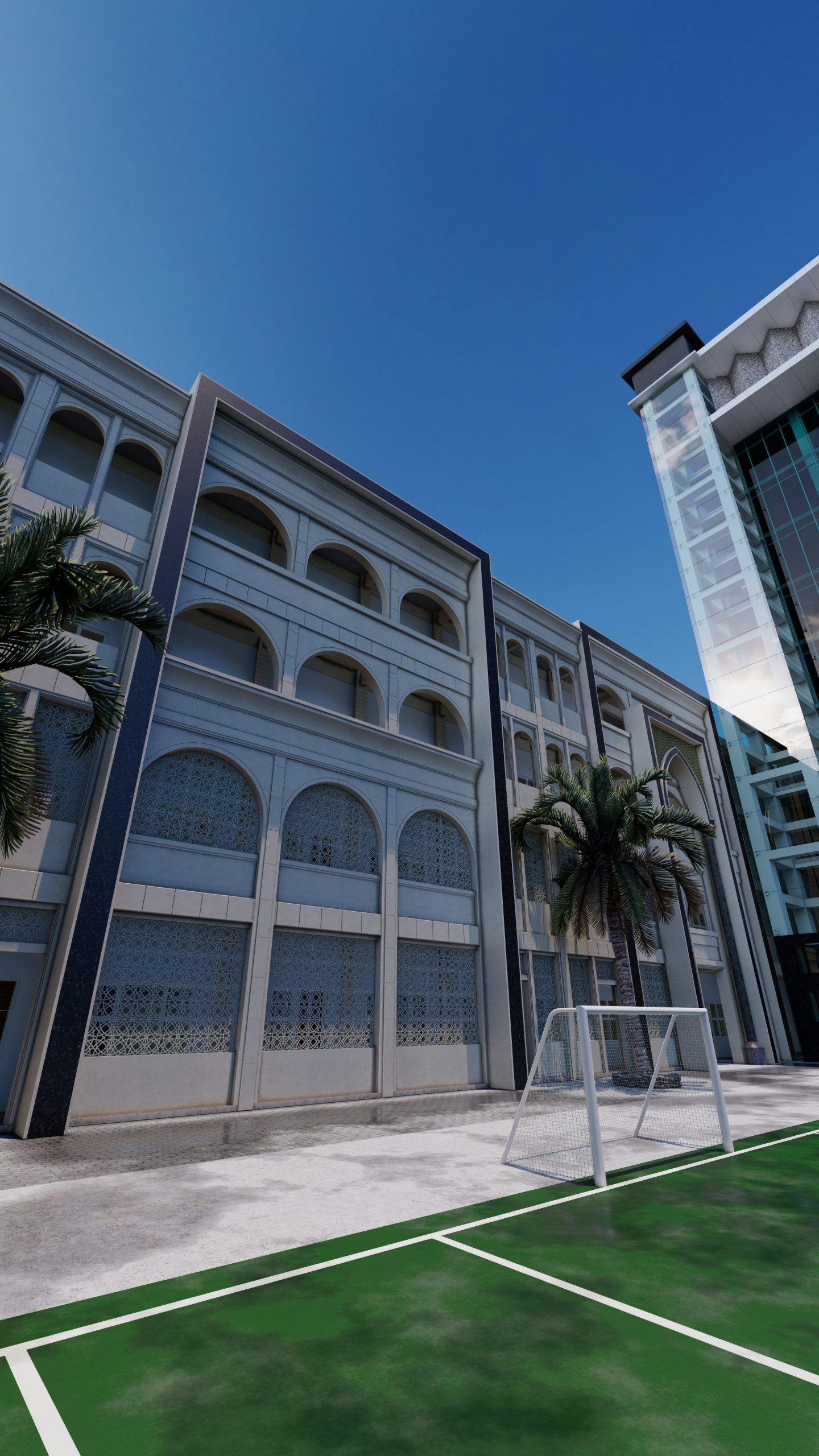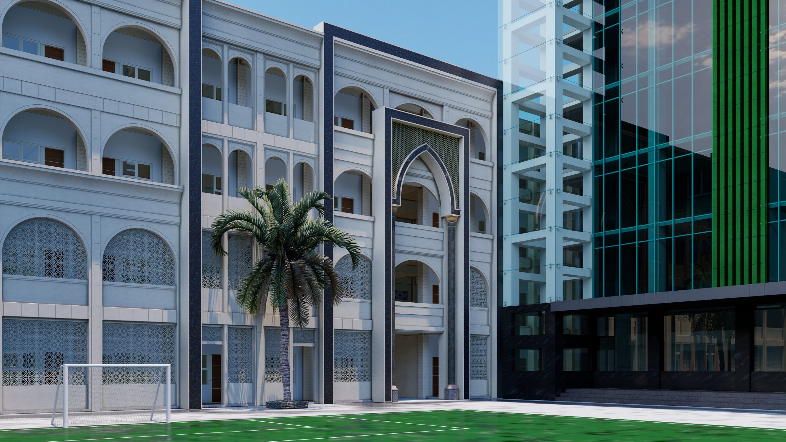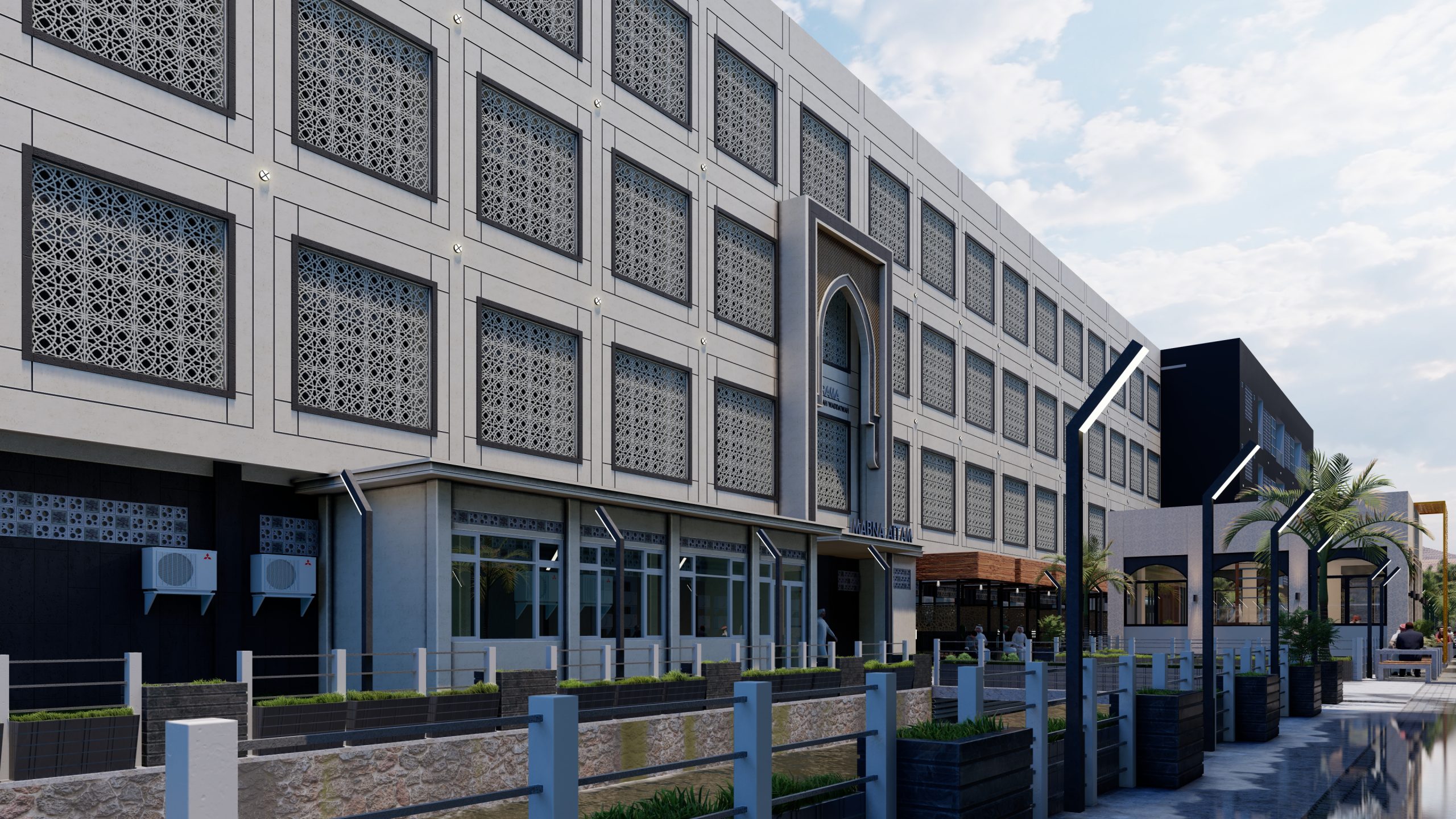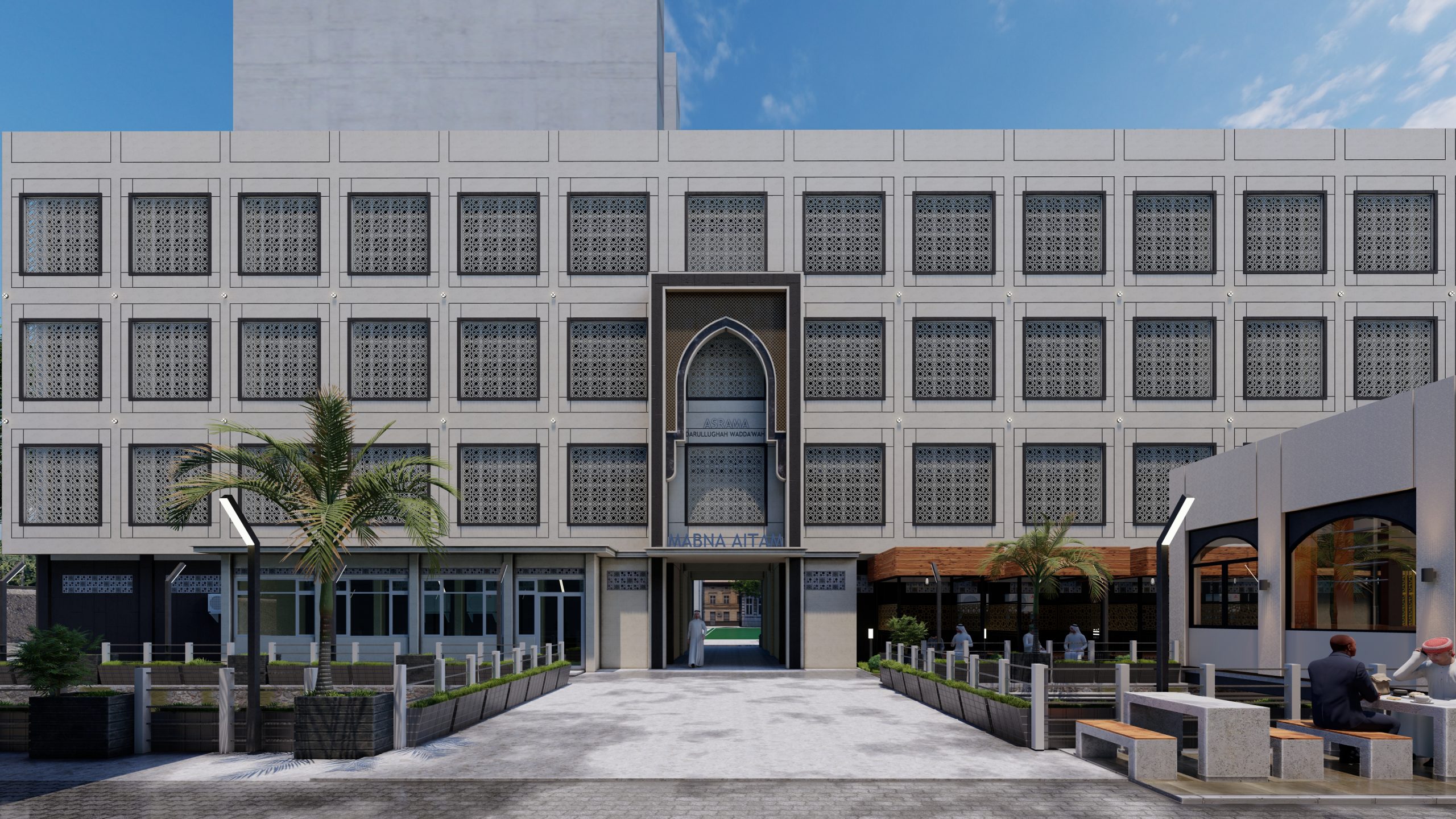 Desain Asrama Modern Mediteranian di Ponpes DALWA oleh Jinan Atelier Desain asrama ini mengusung gaya modern mediteranian yang memadukan kesan hangat, elegan, dan fungsional. Proyek ini merupakan hasil karya Jinan Atelier, spesialis bangunan Islamic architecture yang berpengalaman dalam menghadirkan desain arsitektur bernuansa religius dengan sentuhan modern. Dengan penggunaan roster sebagai elemen utama, bangunan ini tidak hanya tampil estetik namun juga berfungsi untuk menghadirkan sirkulasi udara alami dan pencahayaan lembut yang menambah kenyamanan penghuni. Gaya mediteranian modern terlihat dari permainan bentuk geometris yang sederhana, warna-warna natural, serta material alami seperti batu dan semen ekspos. Konsep ini dirancang khusus untuk asrama santri Ponpes DALWA, di mana nilai-nilai keislaman berpadu harmonis dengan desain arsitektur modern. Jinan Atelier menghadirkan solusi desain yang tidak hanya indah dipandang, namun juga efisien, berkelanjutan, dan sesuai karakter pesantren. Sebagai spesialis bangunan Islamic, Jinan Atelier berkomitmen menciptakan karya arsitektur yang menginspirasi, mengedepankan kenyamanan, serta memperkuat identitas arsitektur Islam di Indonesia.